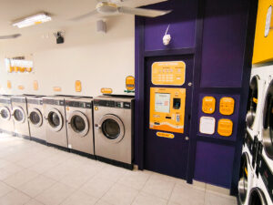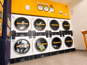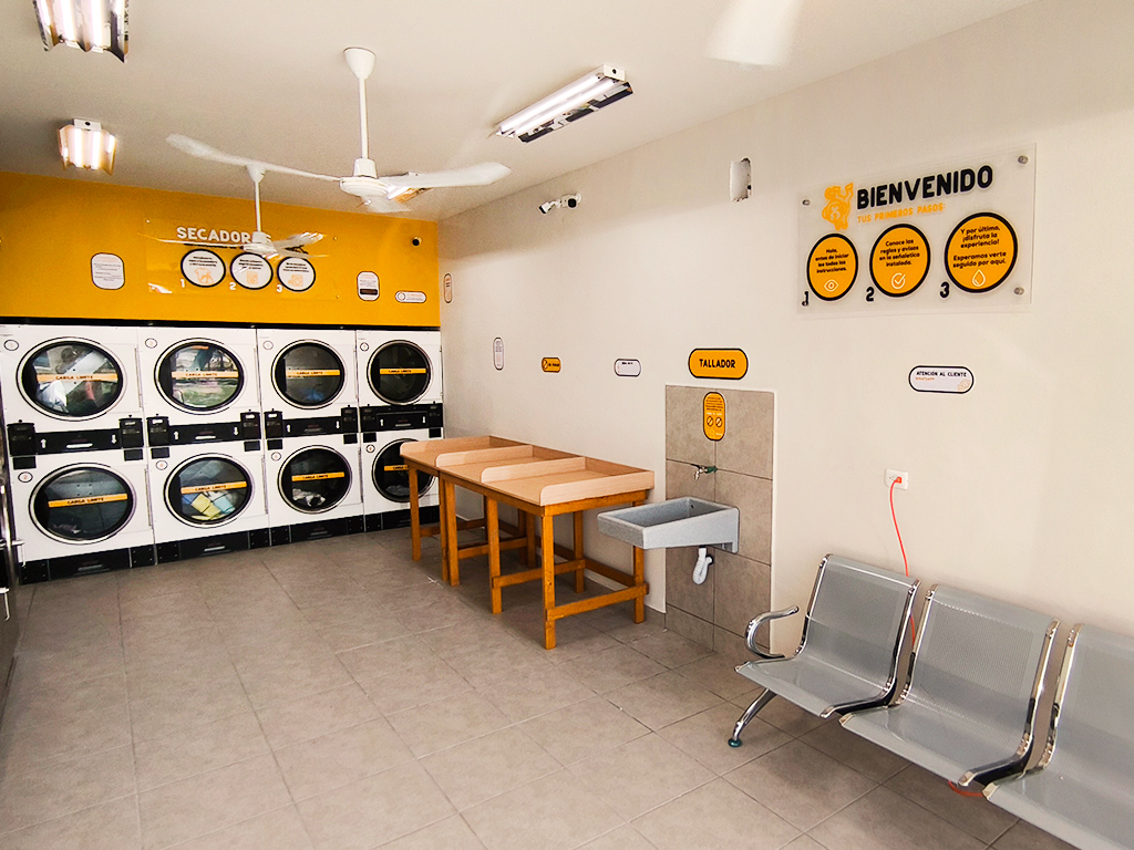 En este espacio cuentas con lavadoras y secadoras industriales de diferentes capacidades, así como un sistema de autocoboro y activación fácil de usar.